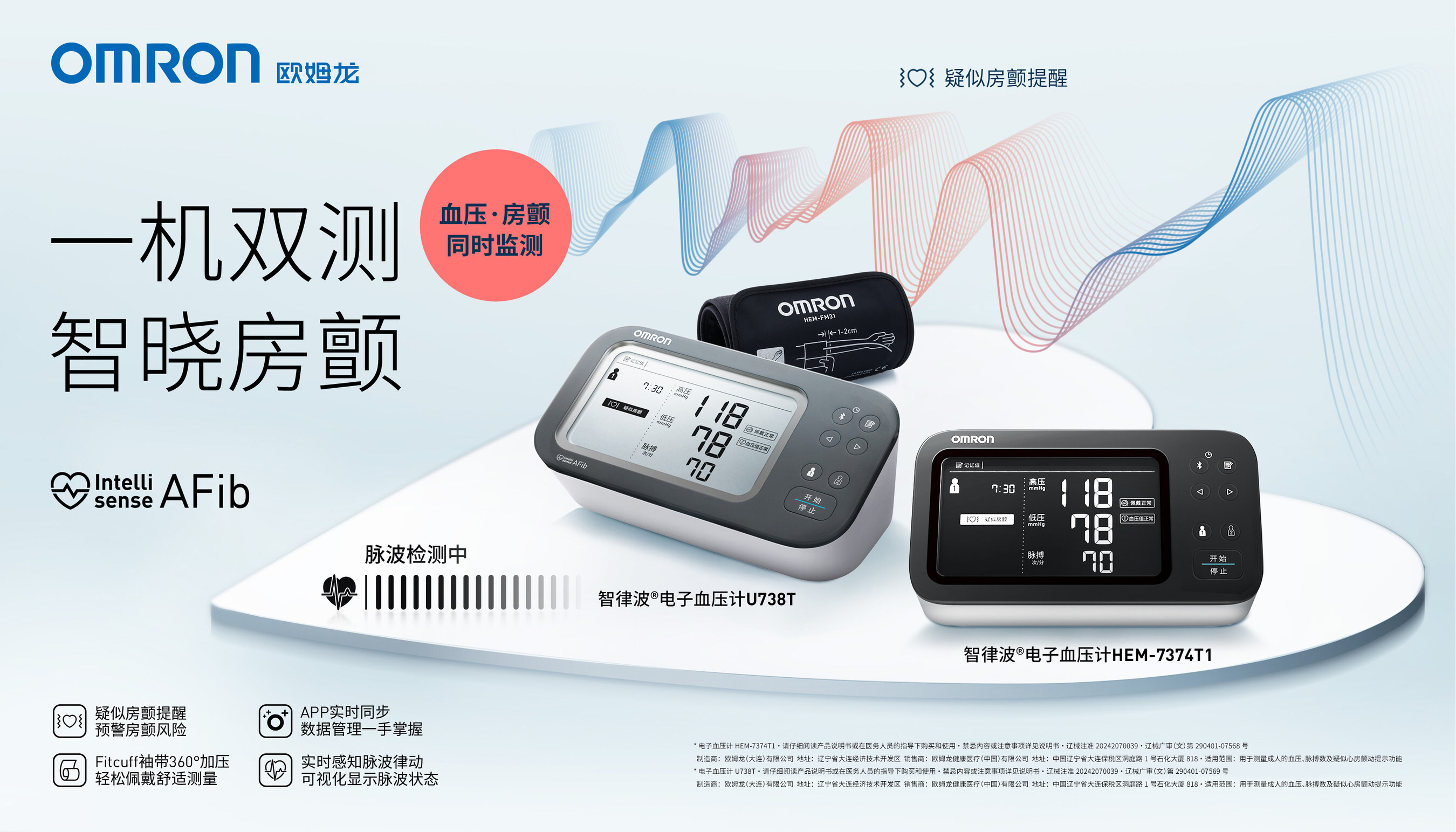 根据世界卫生组织《全球高血压报告(2023)》的数据显示,全球高血压患者在过去30多年间翻了一番,从1990年的6.5亿增至2019年的13亿,影响全世界三分之一的成年人。高血压显著增加多种心血管疾病的发病风险,其中房颤更是可能引发严重脑梗塞的高危因素。在数字医疗持续演进的背景下,欧姆龙聚焦心血管健康领域,积极推动AI技术与传感算法的融合应用,率先开发出可在血压测量中同步提示房颤风险的创新技术——Intellisense AFib。该技术被应用于“智律波”房颤风险提示血压计,使用户在日常测量血压时检测心房颤动的可能性,并及早发现中风等严重疾病的风险。