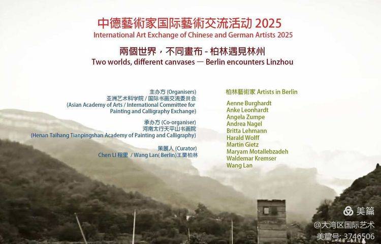 金秋十月,太行叠翠,艺术生辉。2025年10月3日上午9时30分,一场跨越山河的艺术盛宴将于河南林州市天平山书画院艺术中心隆重启幕。中德二十余位杰出艺术家以山为媒、以笔为桥,共赴“北雄风光最胜处”的天平山,开启东方自然哲学与西方表现主义的深度对话。