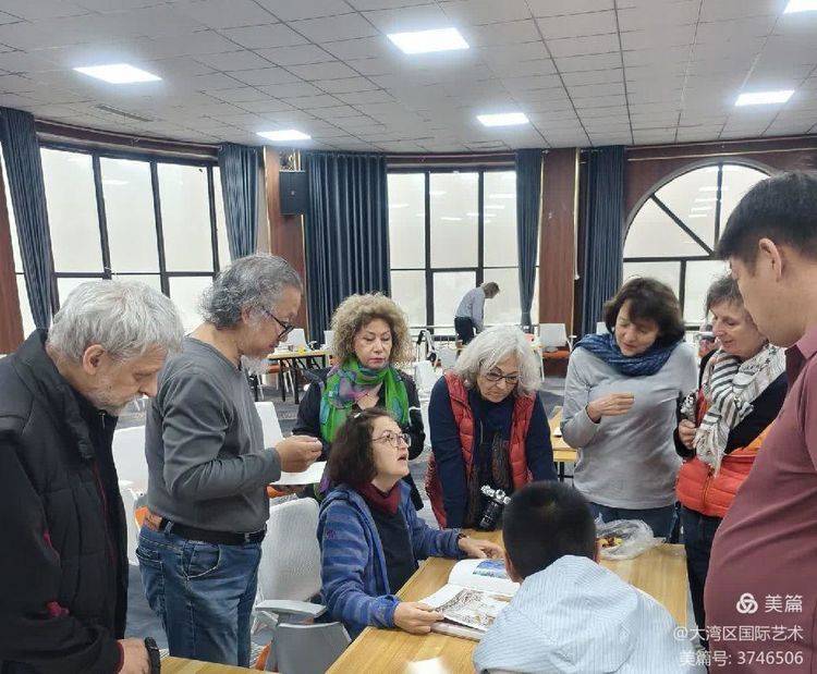德国艺术家在研究讨论武剑飞的重彩作品