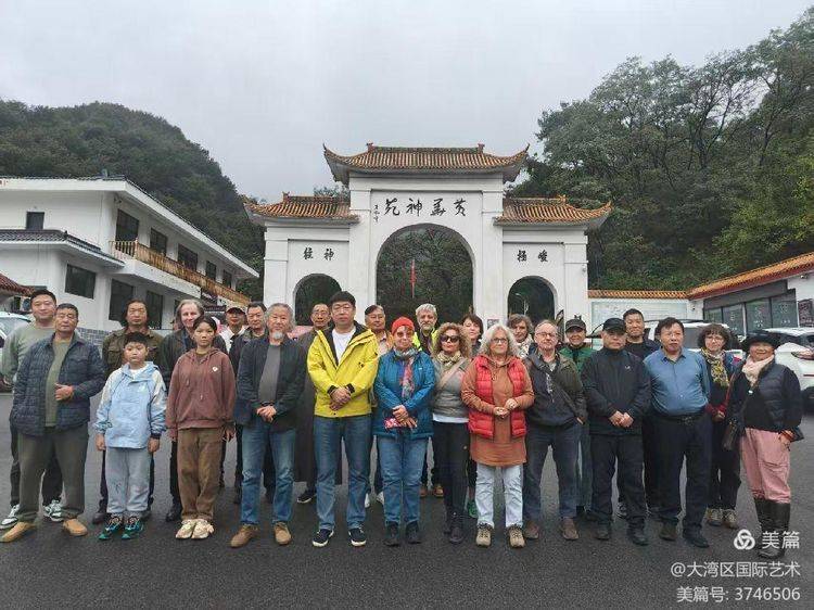 中德艺术家在林州市花千谷康养酒店门前合影留念