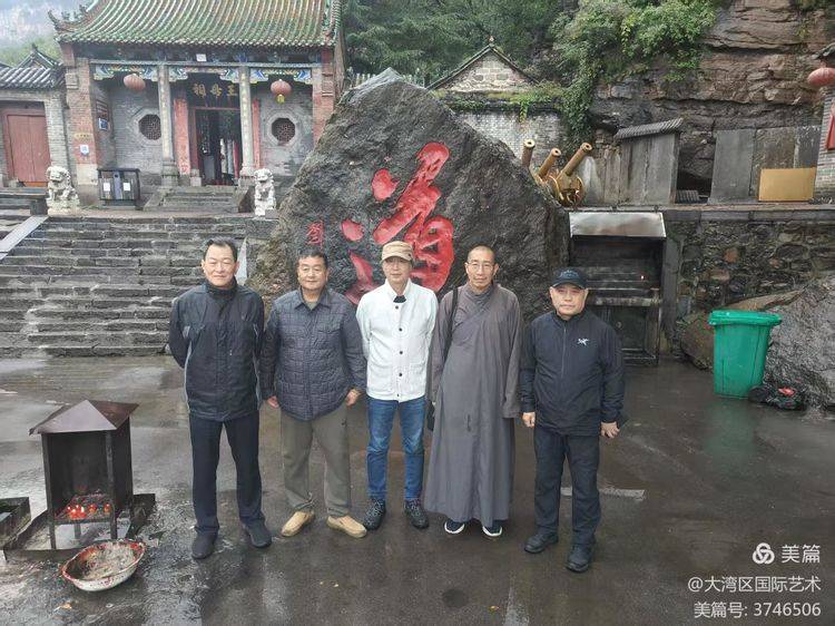 《中德艺术家国际交流展》特邀中国艺术家广西书画院副院长林峰,清华大学教授程里,河北邯郸学院美术系主任张尚公,延日法师,山西美协副主席任晓军在林州市《王母祠》门前合影留念